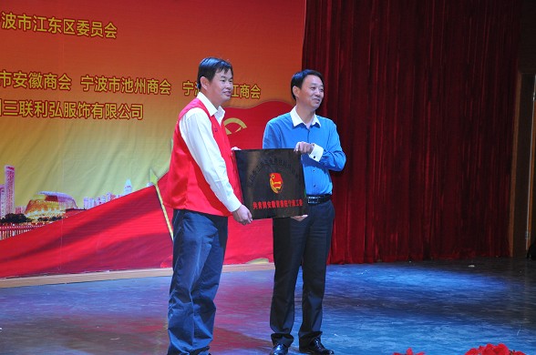 《纳西篝火》-王巨 表演进行了一半,接着是“皖籍务工青年技能培训单位”授牌仪式,共青团代表王圣军副书记为宁波鄞州区金亚职业培训学校程玉彬校长授牌,王书记表达了对程校长的感谢与支持,并和程校长亲切握手。