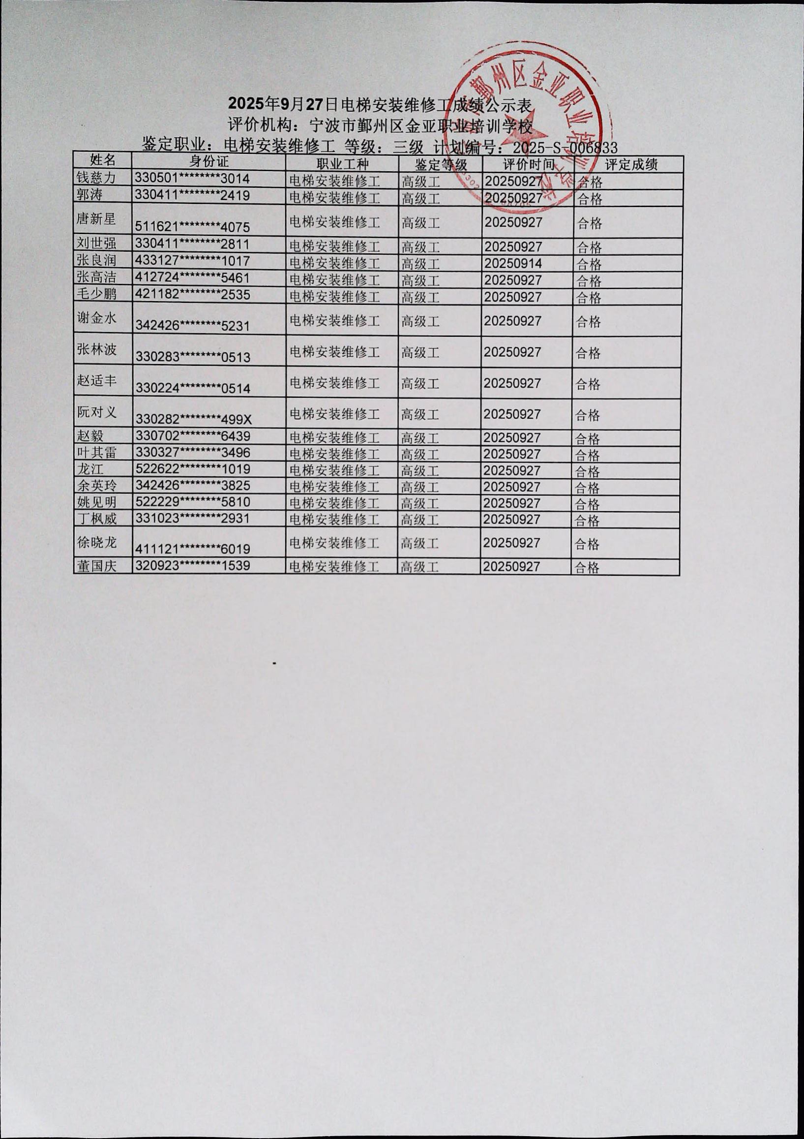 金亚职业技能等级高级认定考试圆满结束,考试成绩结果予以公布!