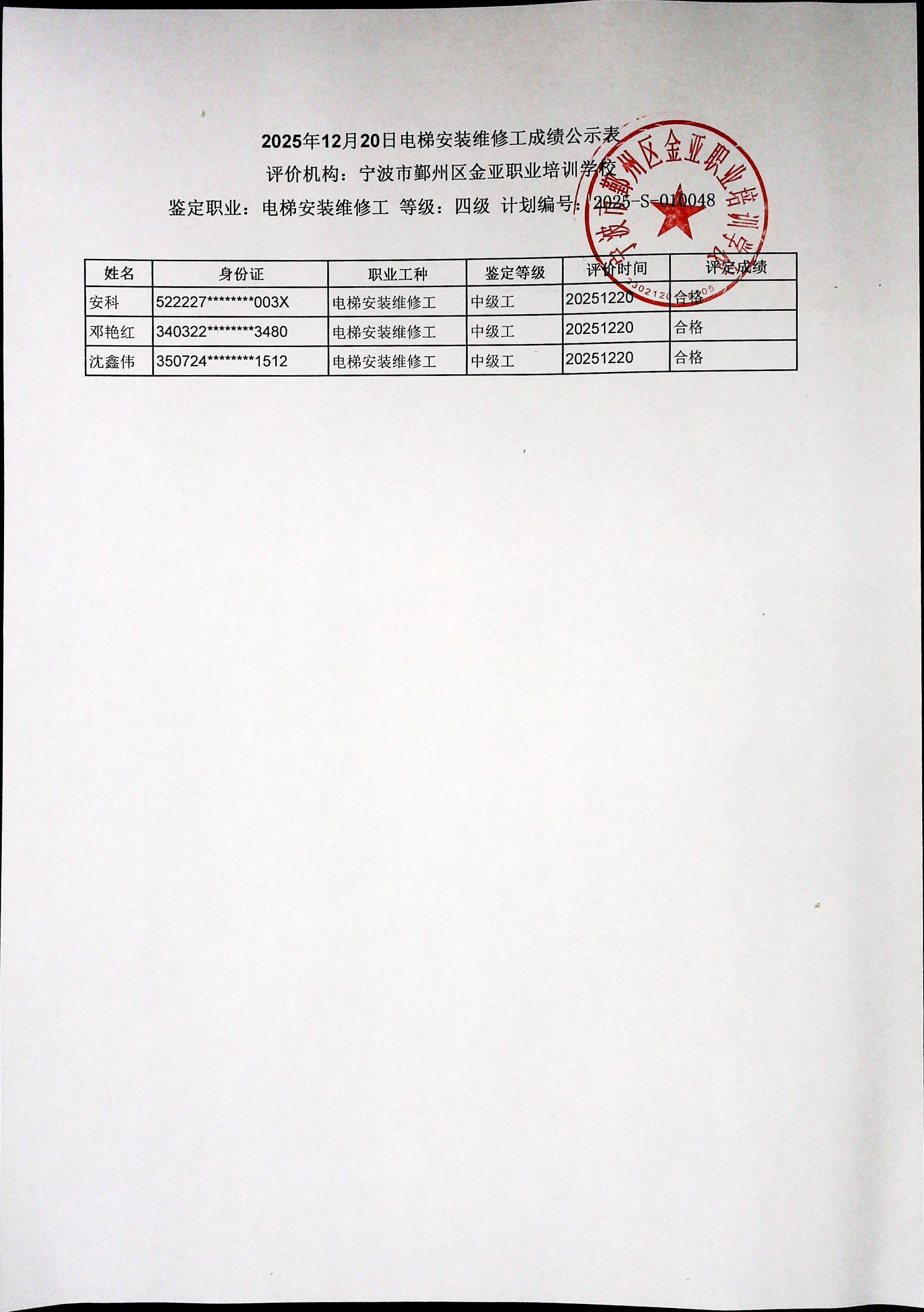 金亚职业技能等级认定考试圆满结束,考试成绩结果予以公布!1.公示期限为5个工作日,自公示之日算起(2025年12月22日-2025年12月26日);