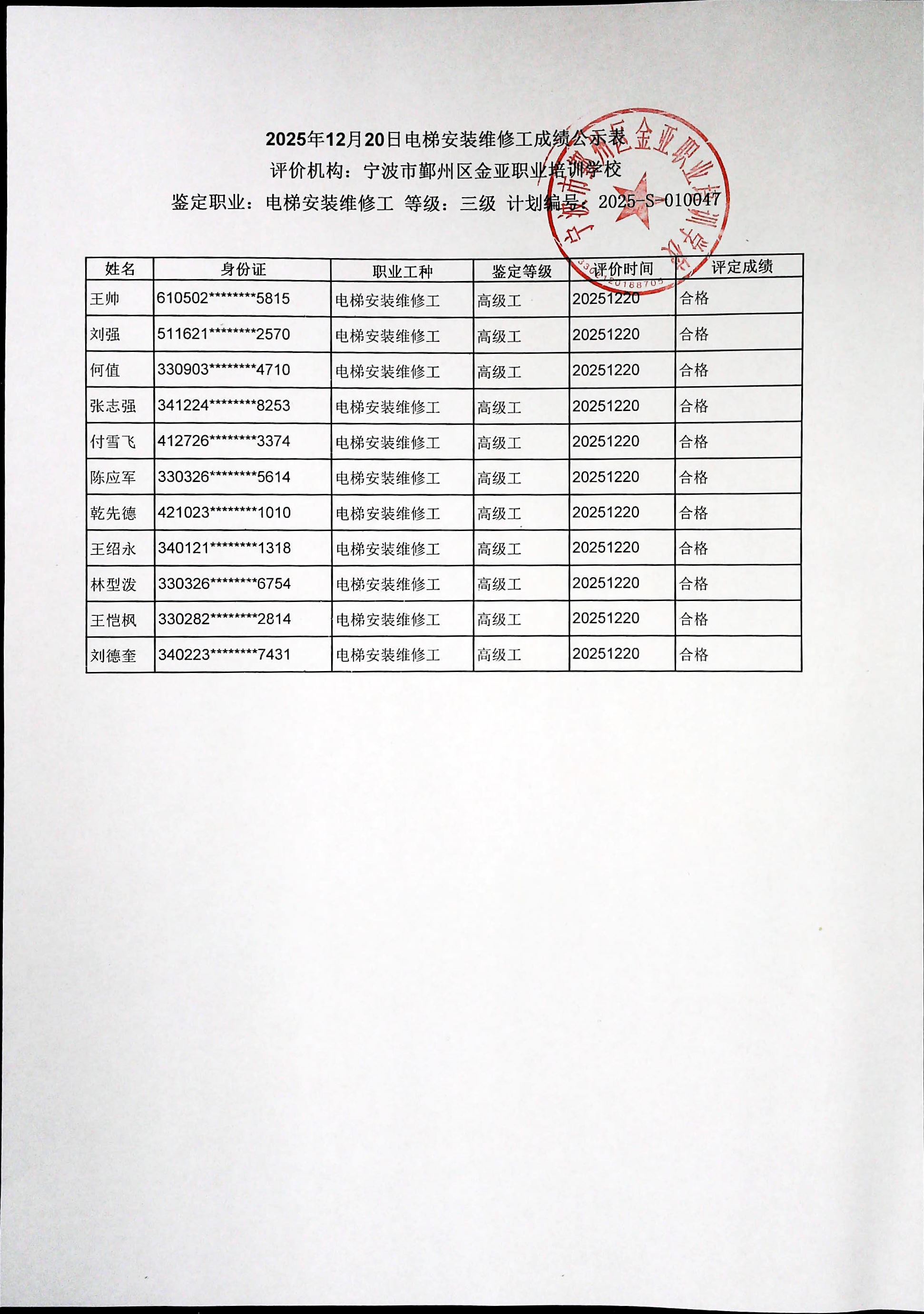 金亚职业技能等级认定考试圆满结束,考试成绩结果予以公布!
