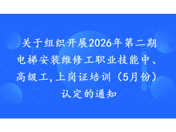 关于组织开展2026年第二期电梯安装维修工职业技能中、高级工,上岗证培训(5月份)认定的通知